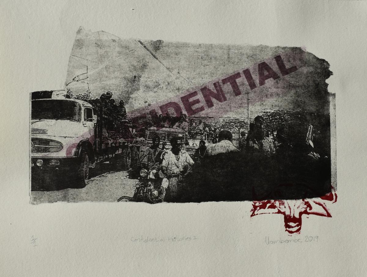 Home — Collection — Helena Uambembe — Confidential Histories I Helena Uambembe Confidential Histories I, 2019 Photo transfer and linocut on Fabriano paper — 26 x 31 cm