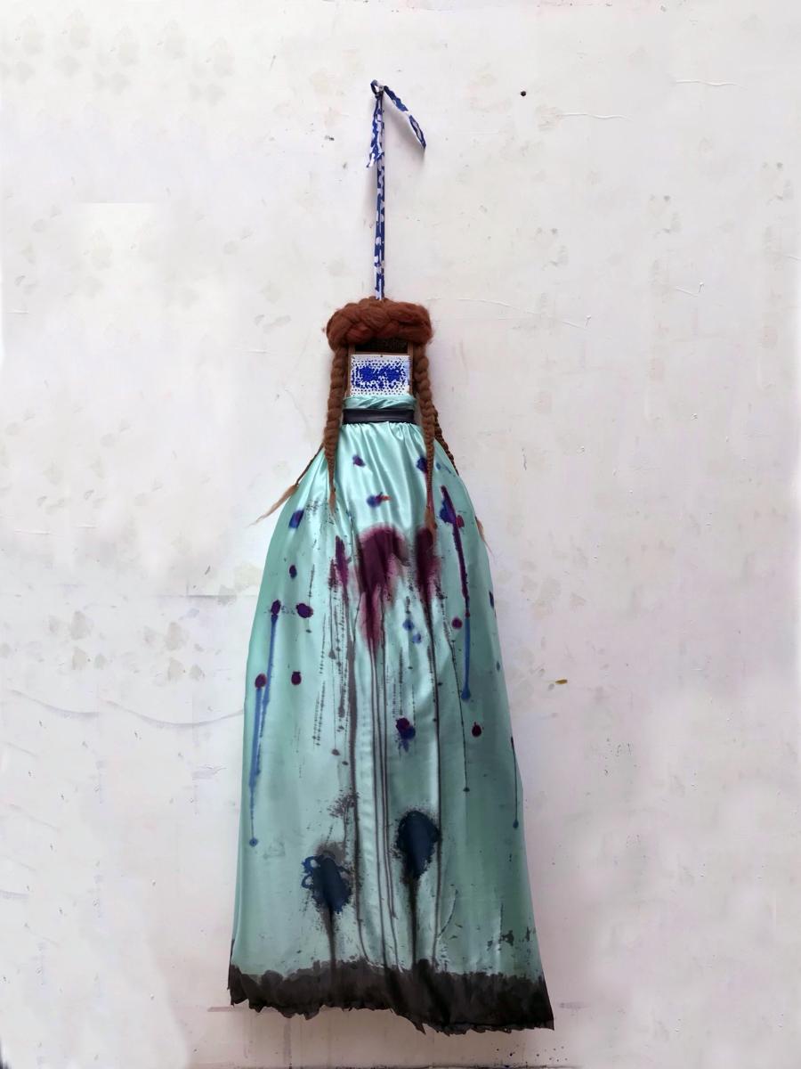 Femme fardee de bleu et sa robe en soie, 2019