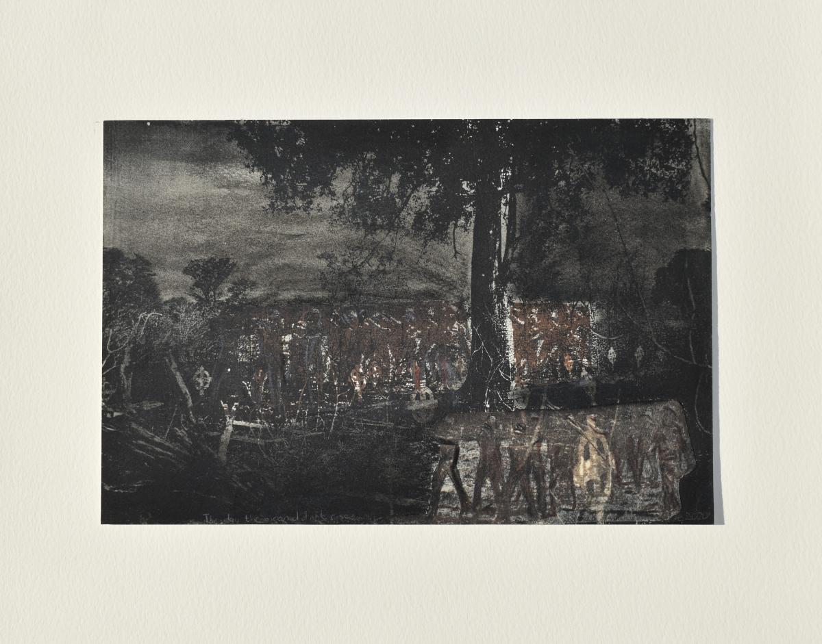 Pronto plate lithograph with monotype and chine collé on Zerkall Litho 250gsm — 31x40cm