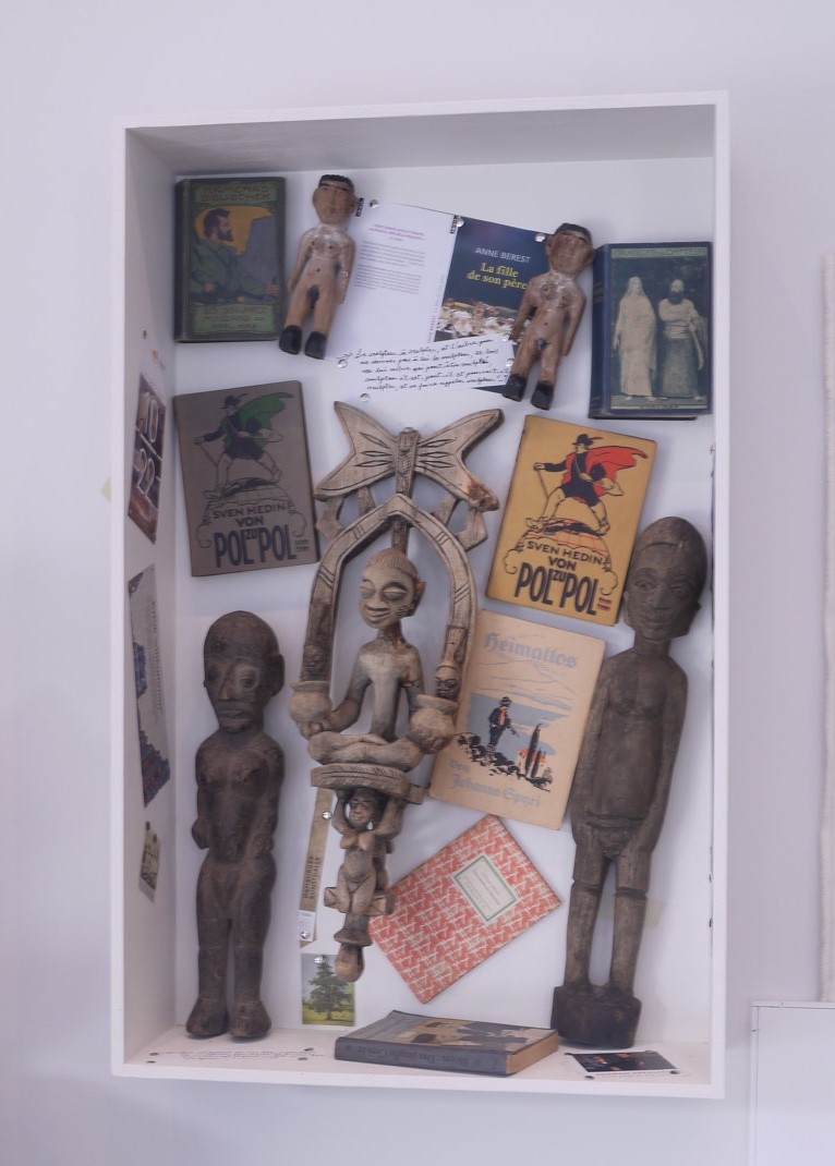 found books and prints in wooden box with plexiglas, sculpture — 95 x 60 x 20 cm